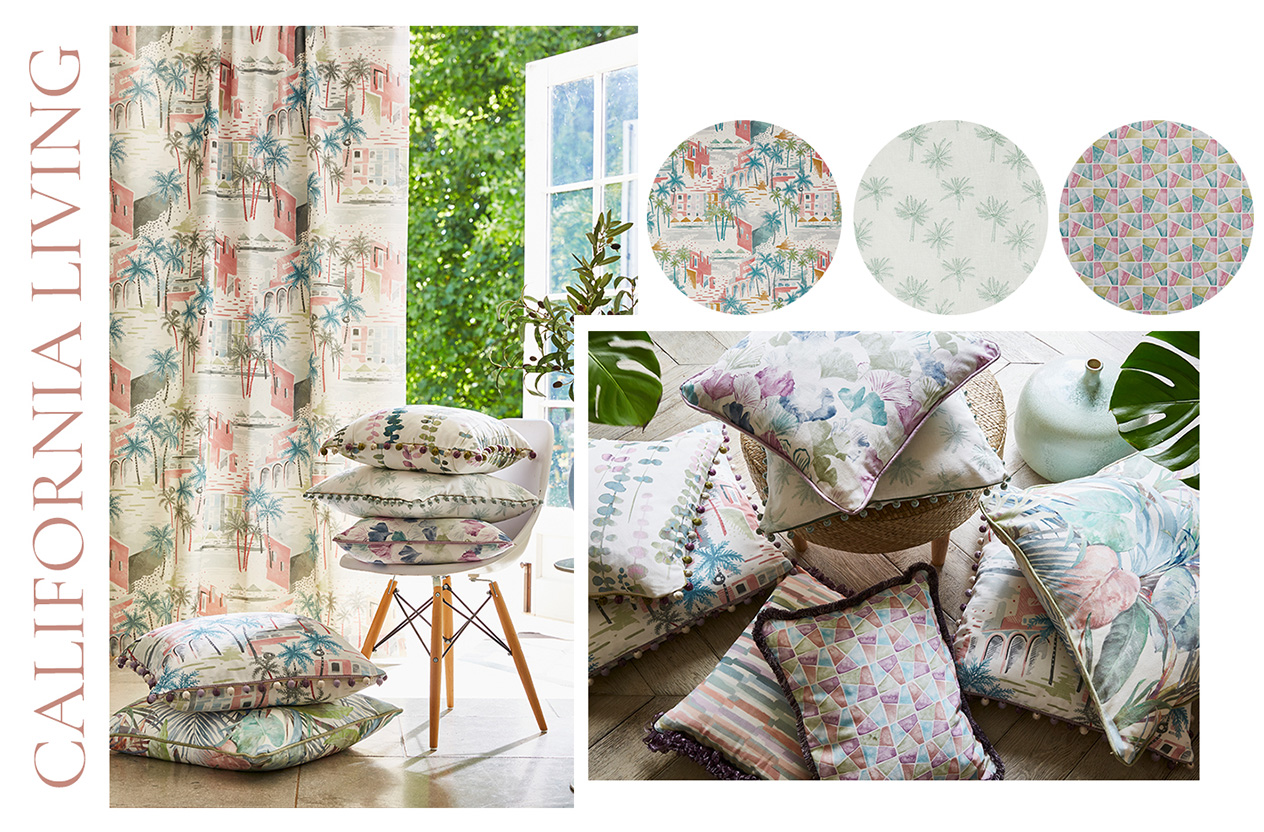 Recreate the laid-back Californian look with Palm Springs. Presenting a fun and confident range of PT Eco prints, the collection showcases painterly designs of vibrant buildings and conversational beach scenes. These are complemented by an intricate, small-scale palm embroidery, Little Palm. On-trend colourways, ranging from soft lilacs and deep-sea blues to cool greys, provide a contemporary and trend led take on the Californian theme.
