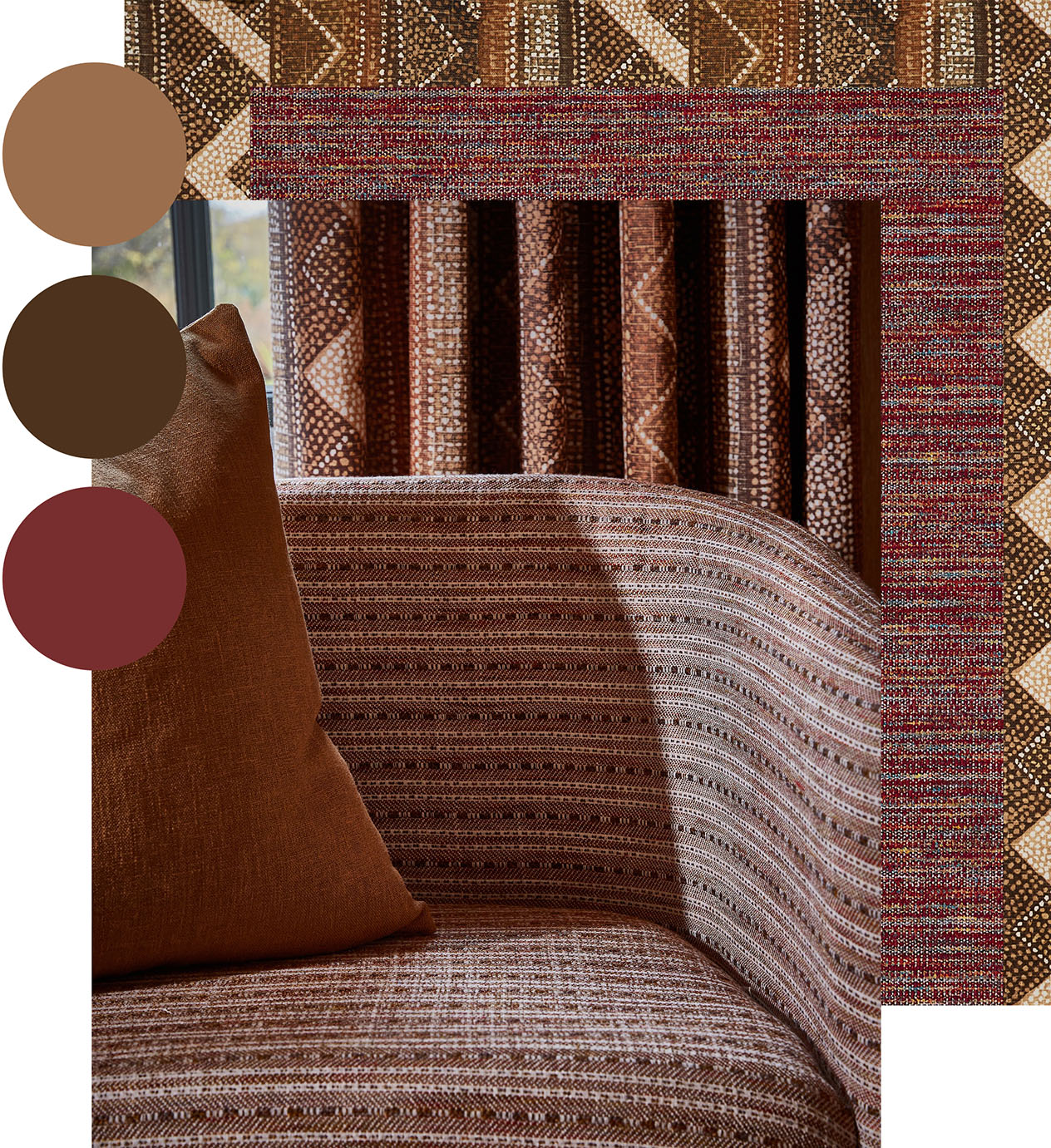 Use brown to form the base layer of your scheme, thanks to its versatile nature. Desert and umber tones through to chocolate browns fill a space with warmth. These also appear more inviting than darker shades such as black. Layer these with light browns for a varied look. Use darker browns on large expanses of furniture to create a cocooning scheme. Pair with lighter hues in accessories such as scatter cushions, or vice versa. Use gentle tones at your window to help a room feel bright, too.