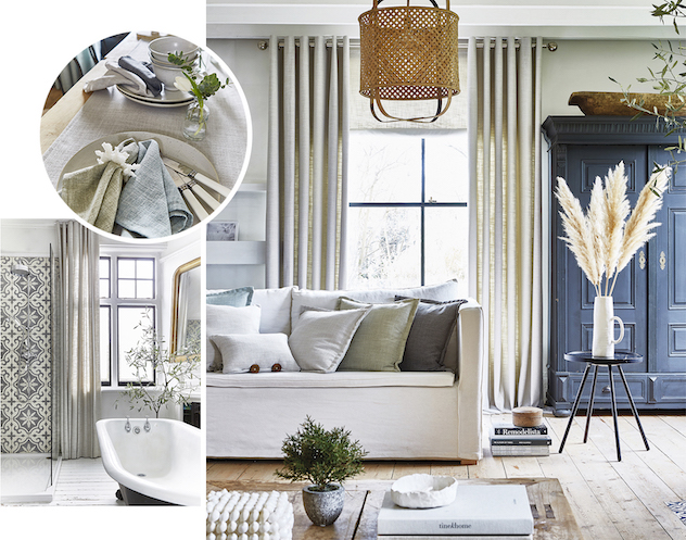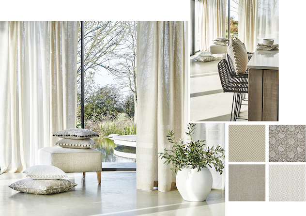 Discover fresh pastel shades in flowing drapery to bring an effortless, crisp finish to an interior. Alternatively, warmer hues of clay and jute will give a space a light and airy but cosy feel.