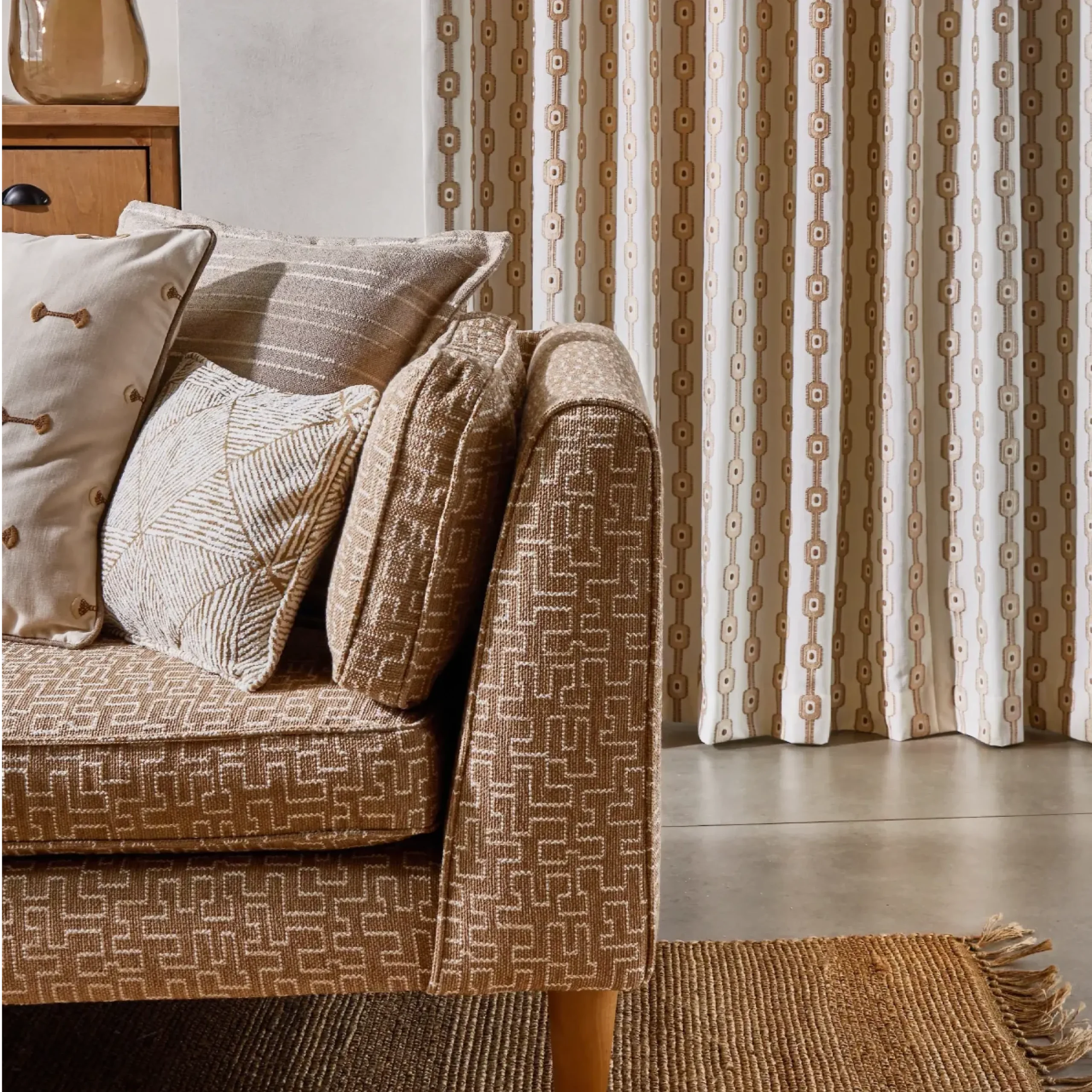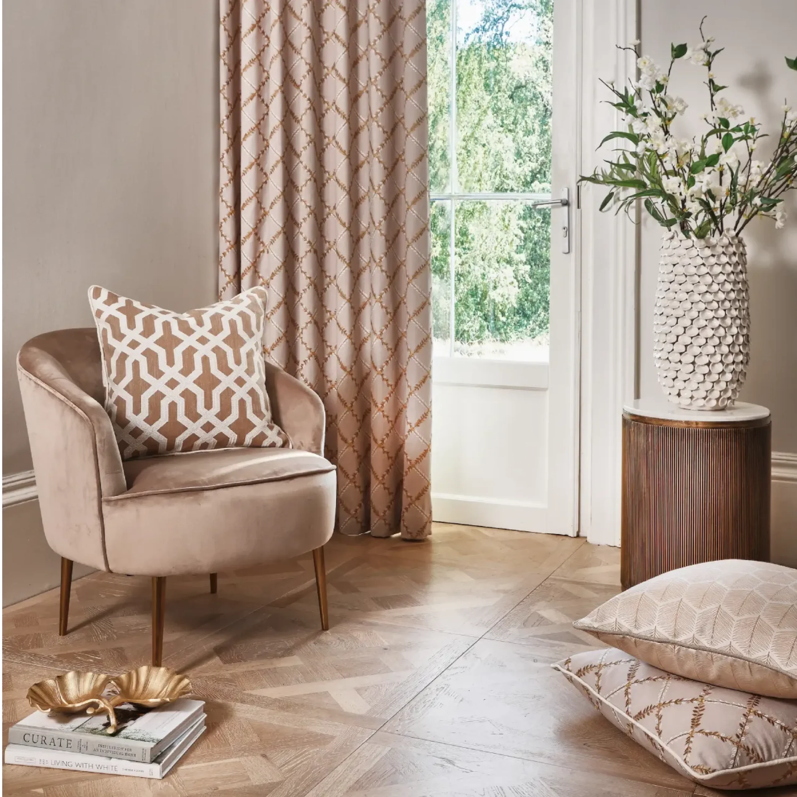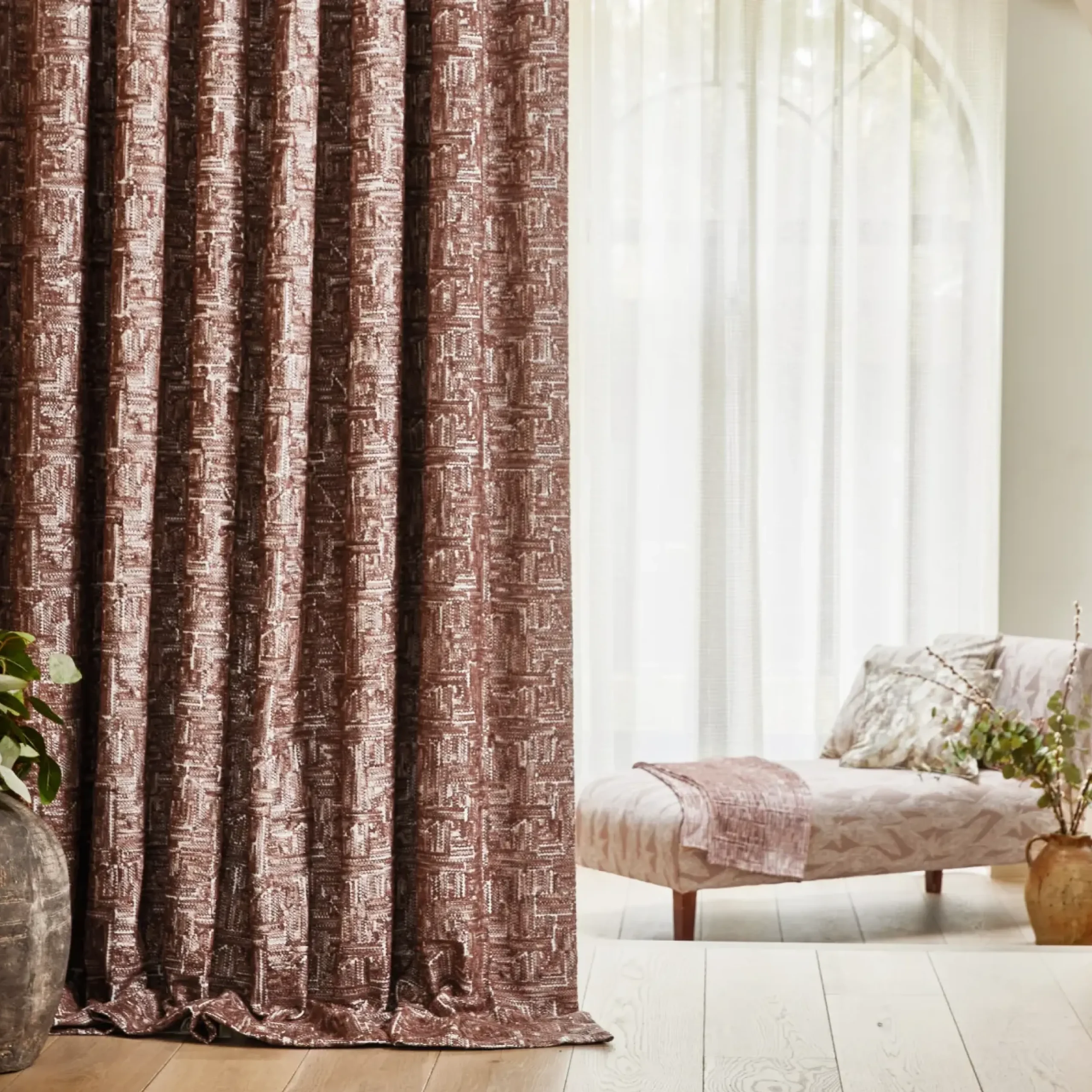 Delicate and playful, our embroidery fabrics are effortlessly charming in their appearance. They inject subtle interest into a range of settings, and can be used for several soft furnishings. Each design lends itself well to elegant blinds and curtains, as well as smaller accessories. Featuring in our portfolio of embroidery fabrics are striking geometrics through to Jacobean florals and timeless stripes, suited to a host of interior styles.
