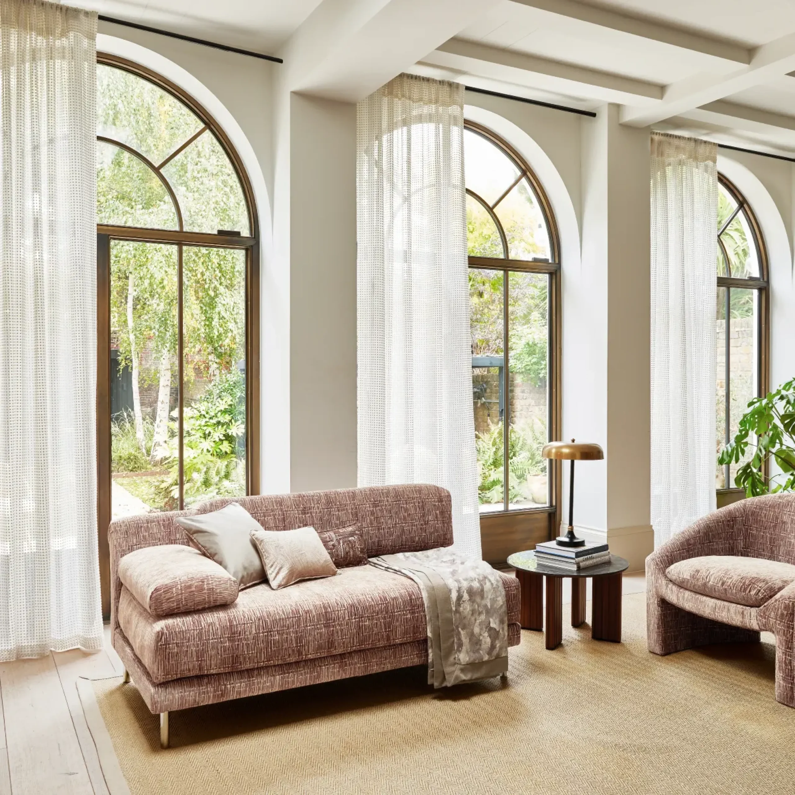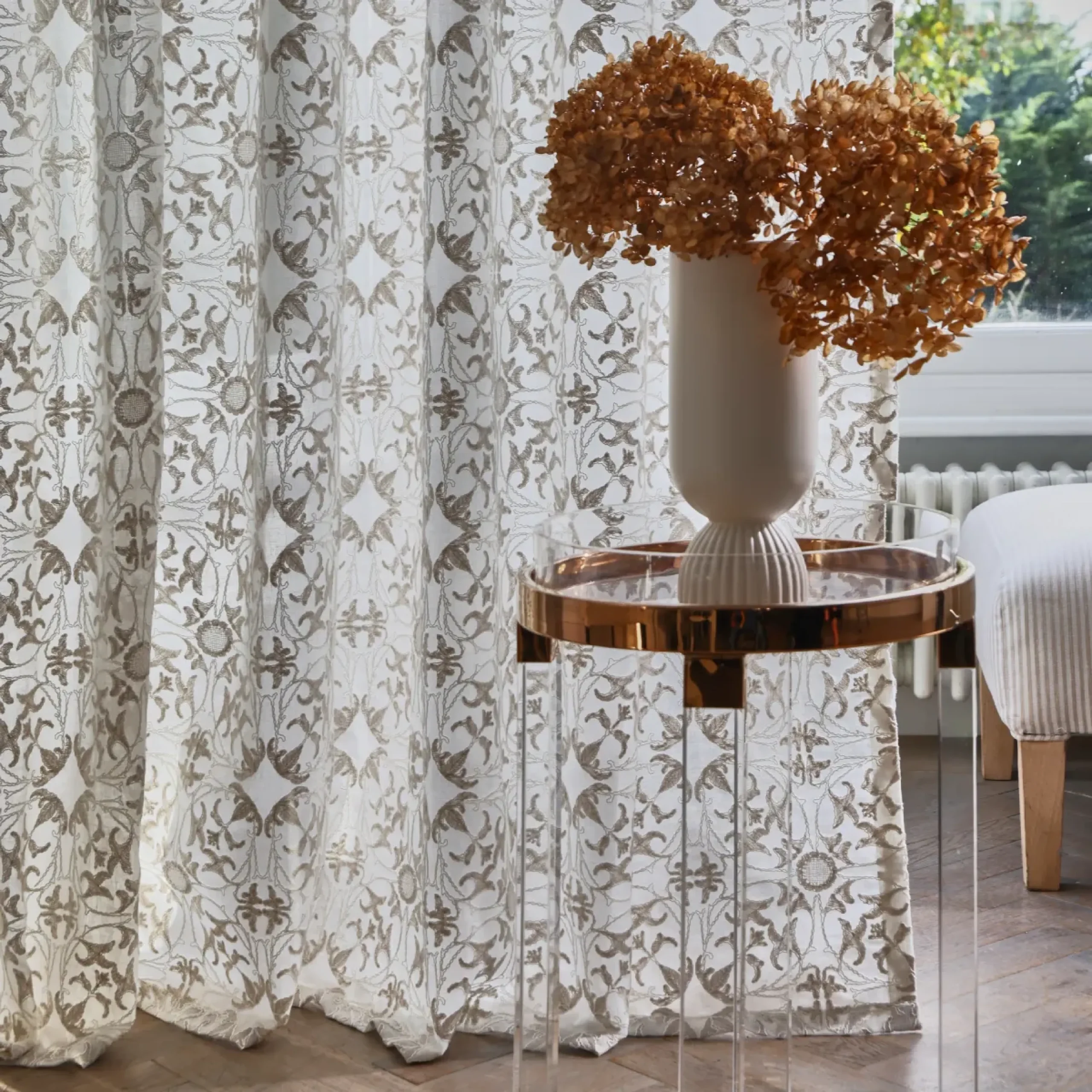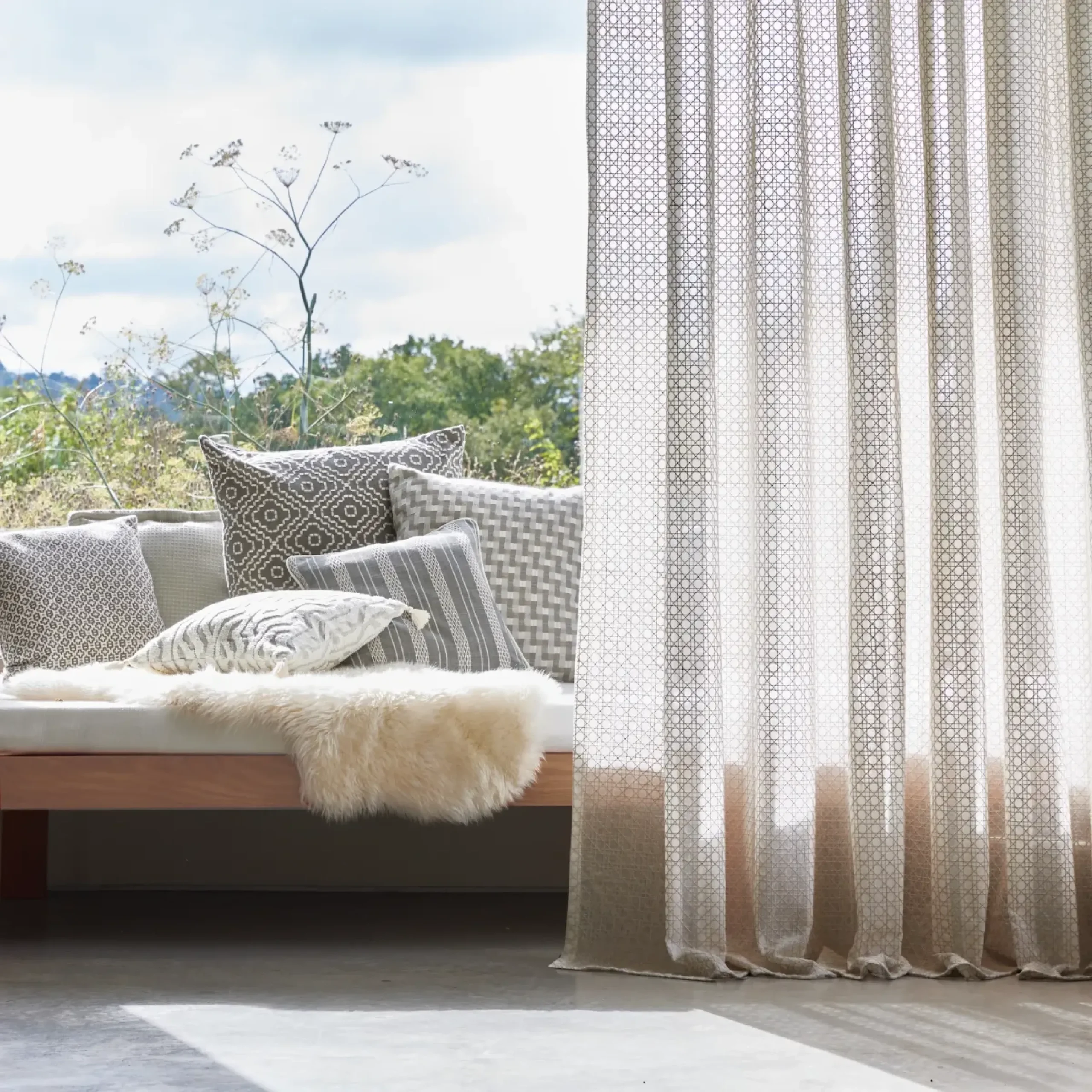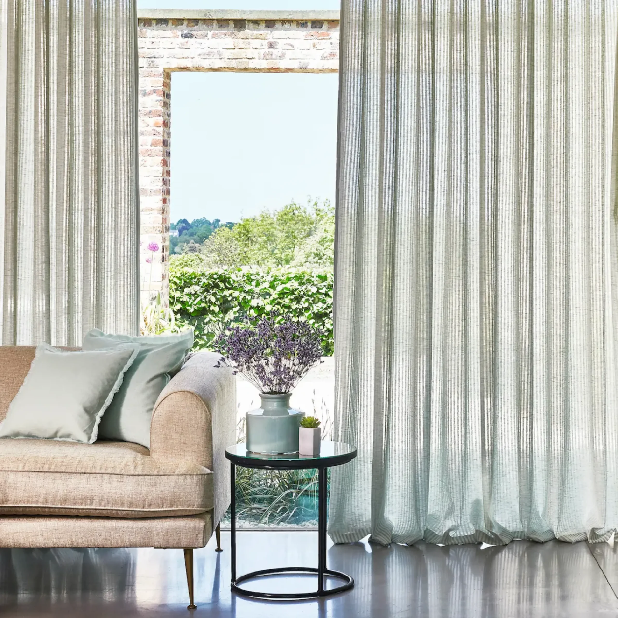 Add a whisper of interest to your window with our sheer fabrics. Our ethereal designs provide a layer of privacy whilst gently filtering daylight, for tranquil spaces. Our library of sheer fabrics features a curation of diverse yet similarly elegant finishes. These span wispy plain finishes with subtle texture to embroidered stripes and floral illustrations. Plus, with a number of collections also part of our PT Extra range, you can enjoy no joins in curtains for even the widest of window spaces.