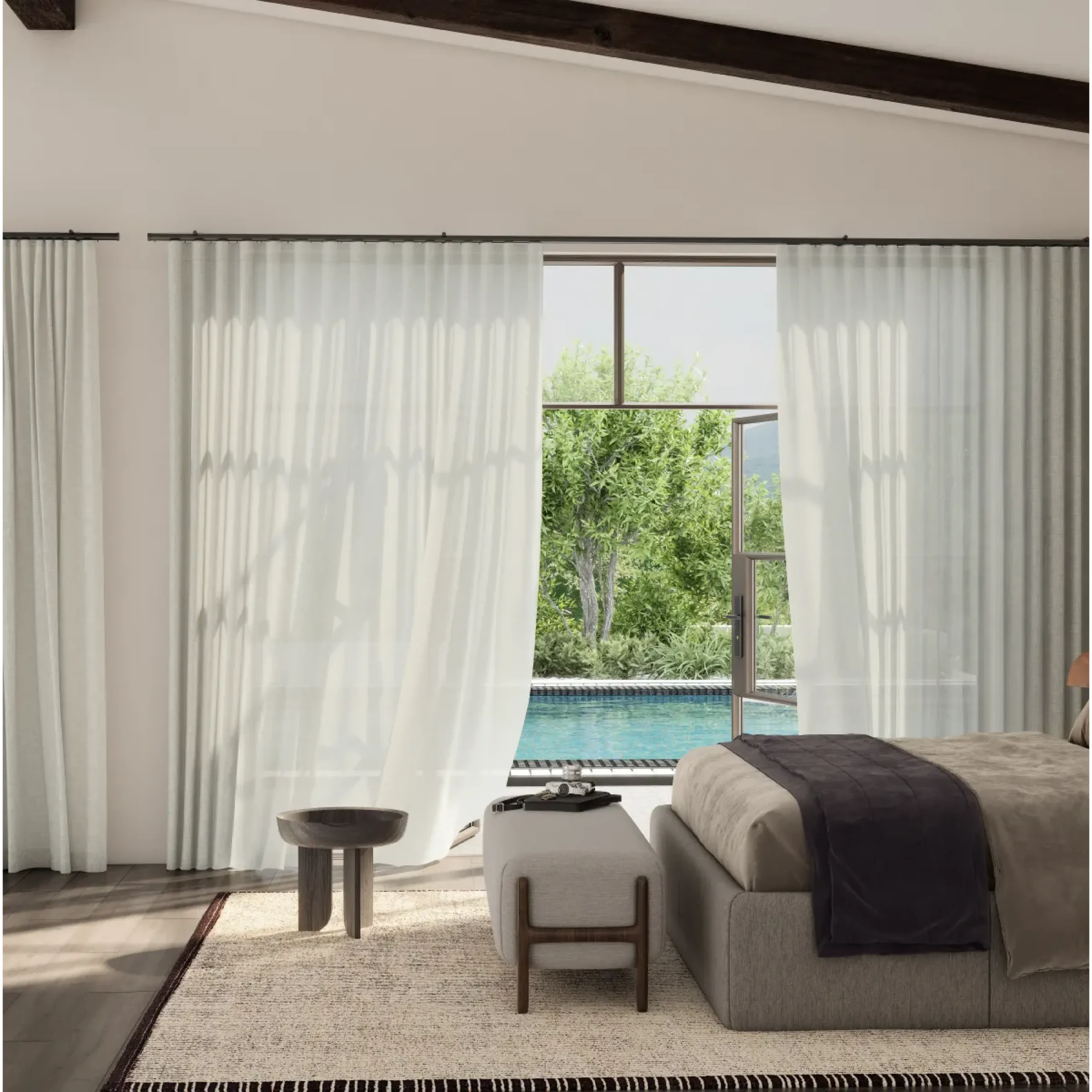 Combining the beauty of sheer fabrics with the added practicality of light control, Mistral’s semi-sheer, FR design is perfect for calming contract schemes. Part of the PT Eco range, the design’s 100% recycled finish is available in an on-trend palette of 30 colourways, for simple sophistication.