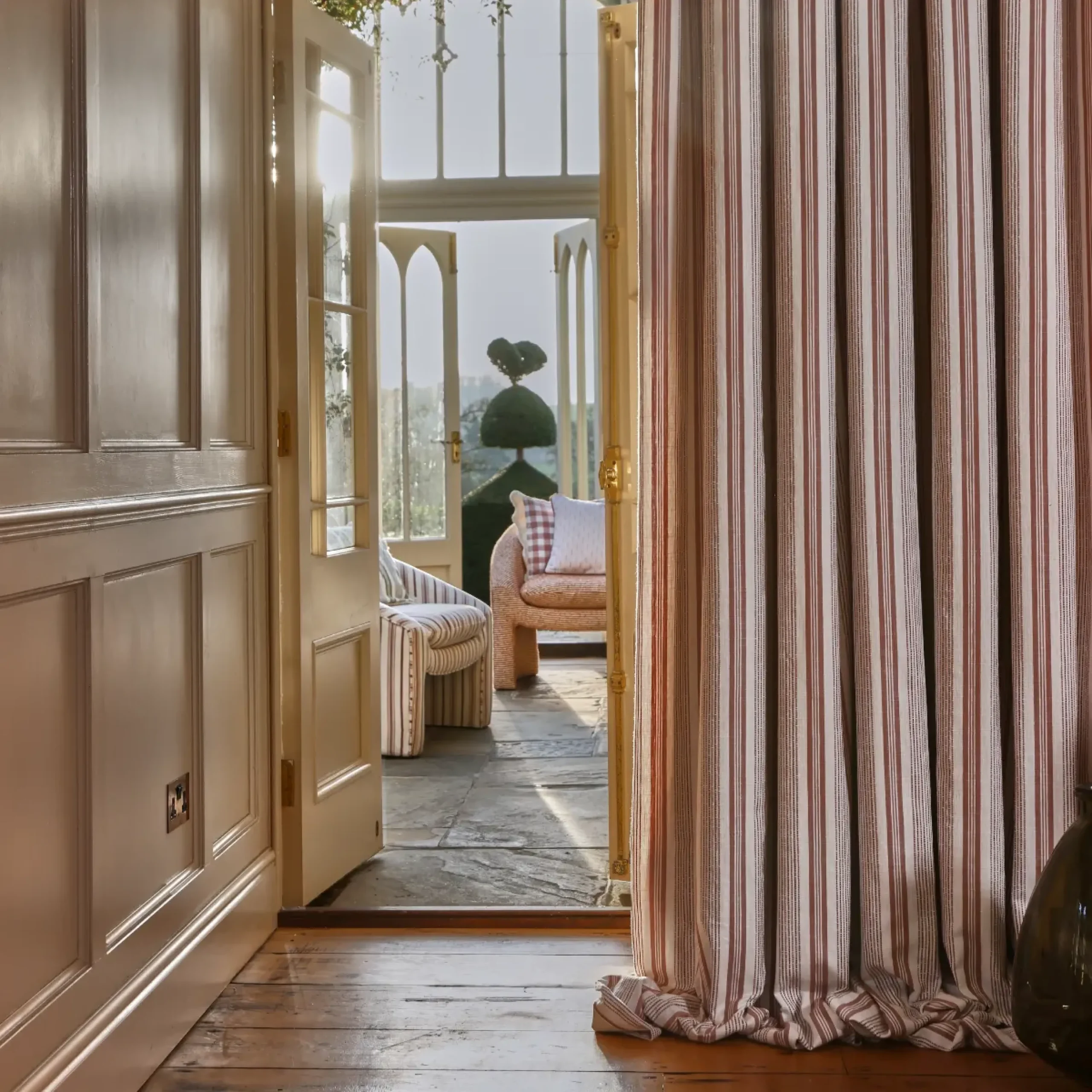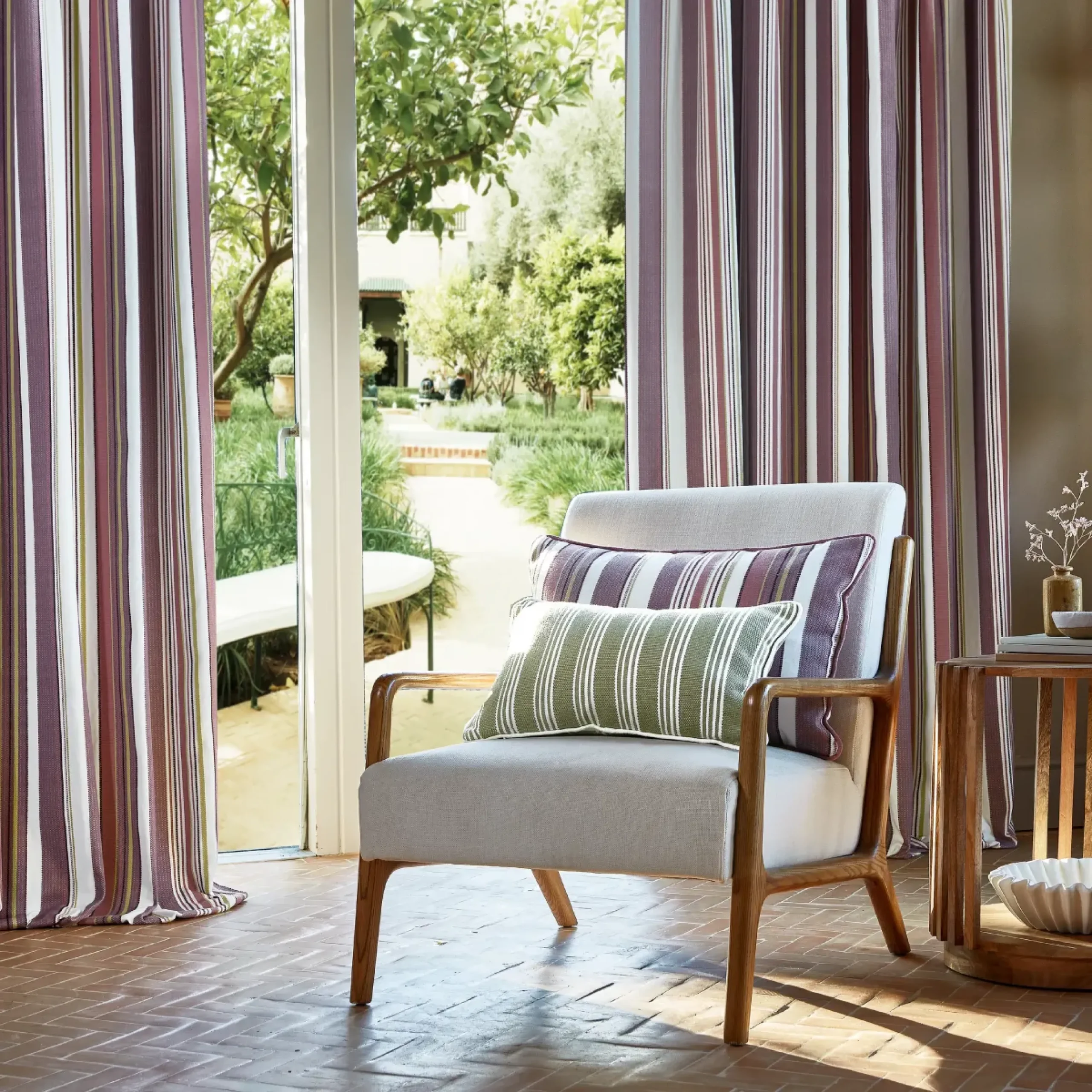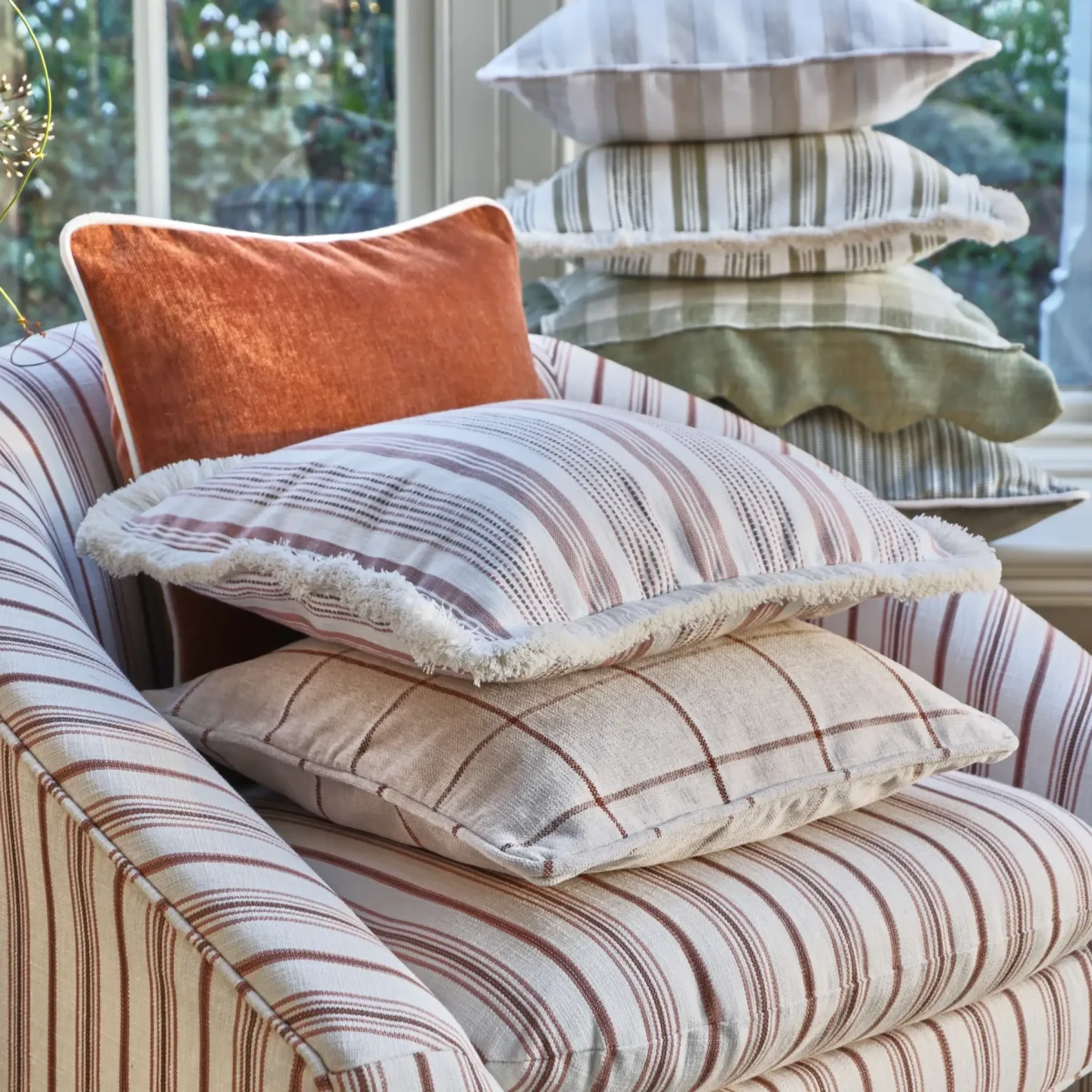 Timeless and versatile, our stripe fabrics will always look the part, however you decide to use them. This classic pattern creates cohesion and lends itself well to a number of treatments. From upholstery and drapery to soft accessories, the options to introduce subtle interest with our stripes are endless. Our portfolio features classic ticking designs and textured cross stripes through to beautifully embroidered floral stripes. Take a look below and discover the striped fabric you have been searching for.